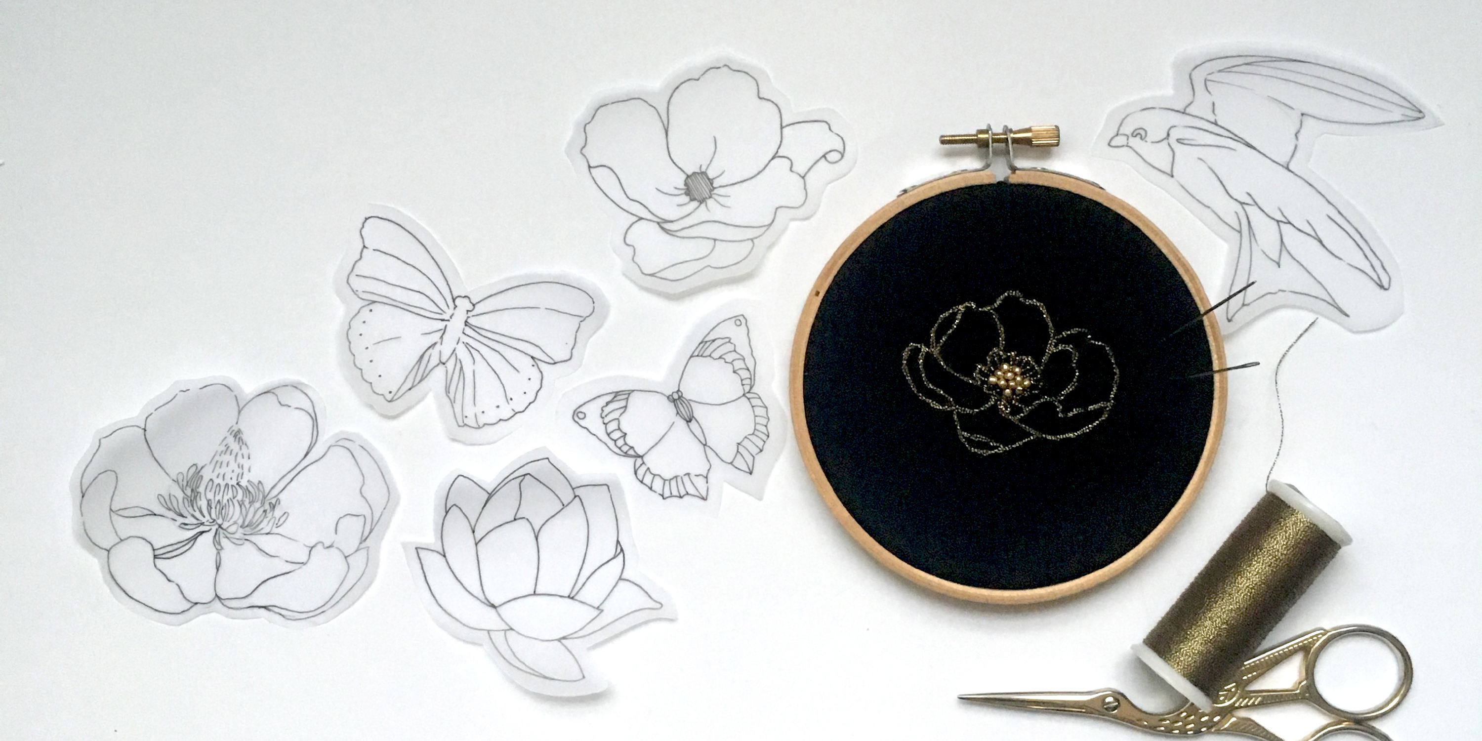 Dans l’esprit d’un petit cabinet de curiosités, Nini Peony vous propose fleurs et créatures ailées à broder comme des trophées et accrocher au mur grâce à ses cercles de broderie.